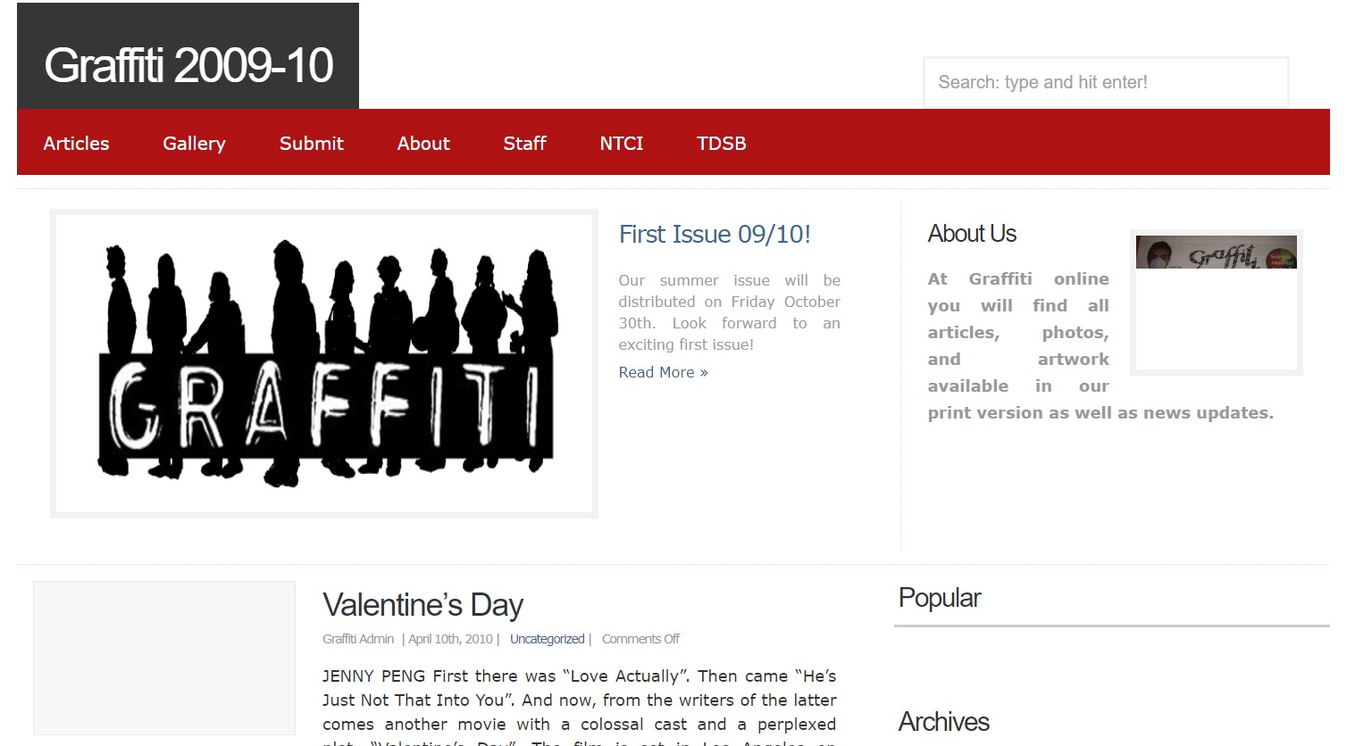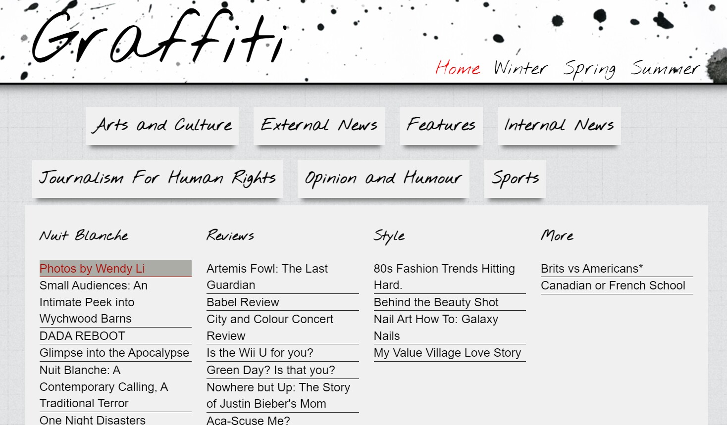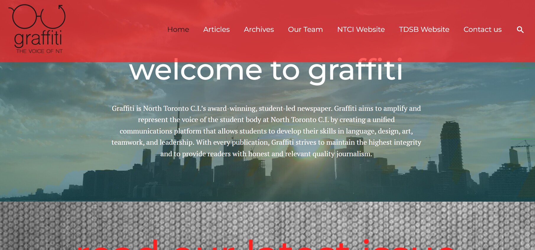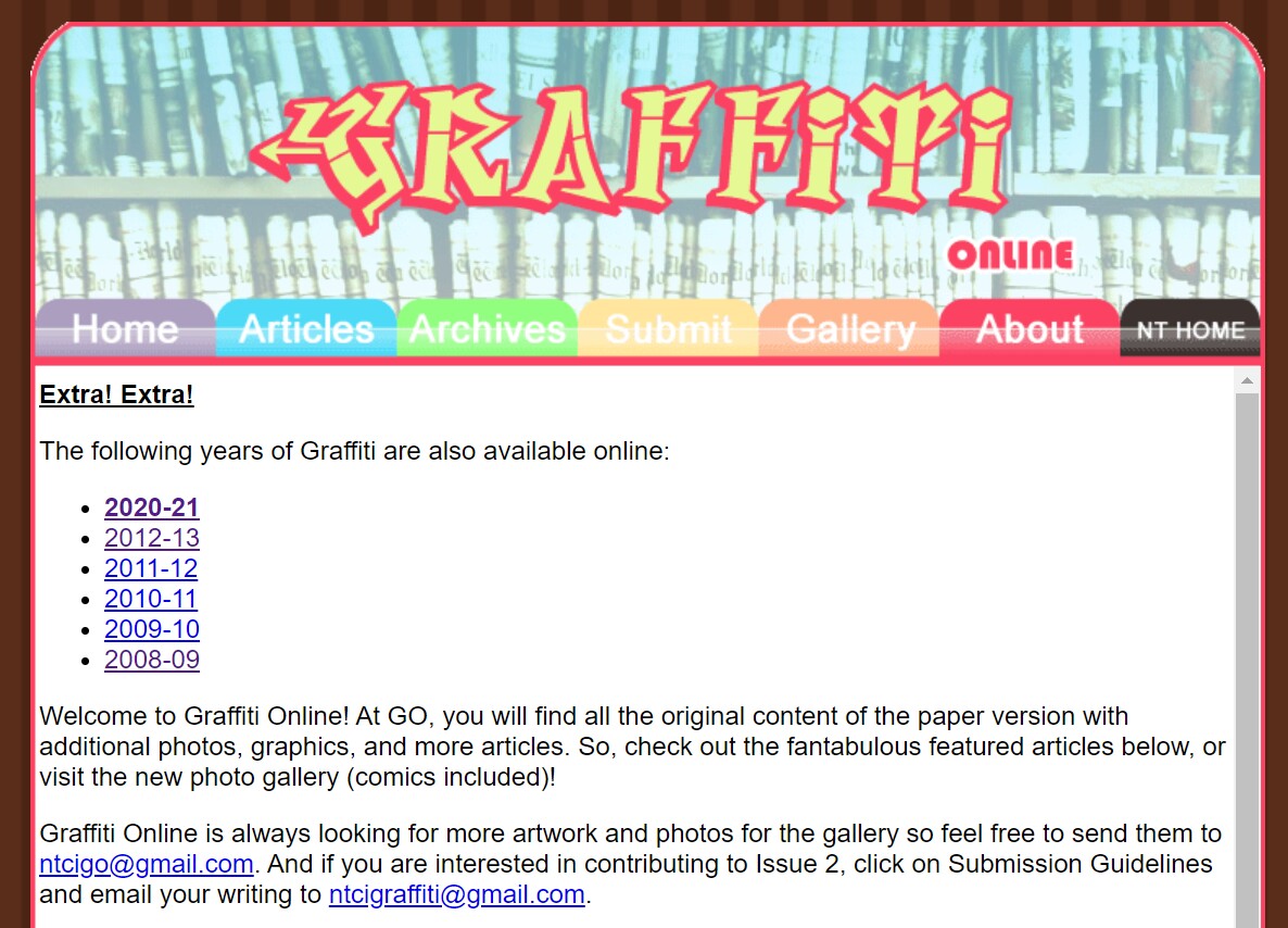 Graffiti has been North Toronto Collegiate Institute’s newspaper since 1986. The print archives are no longer at Issuu.com and can be found on this site.